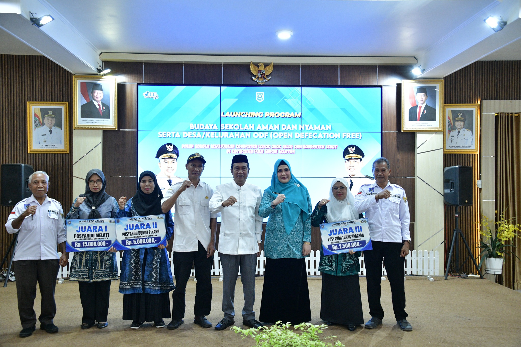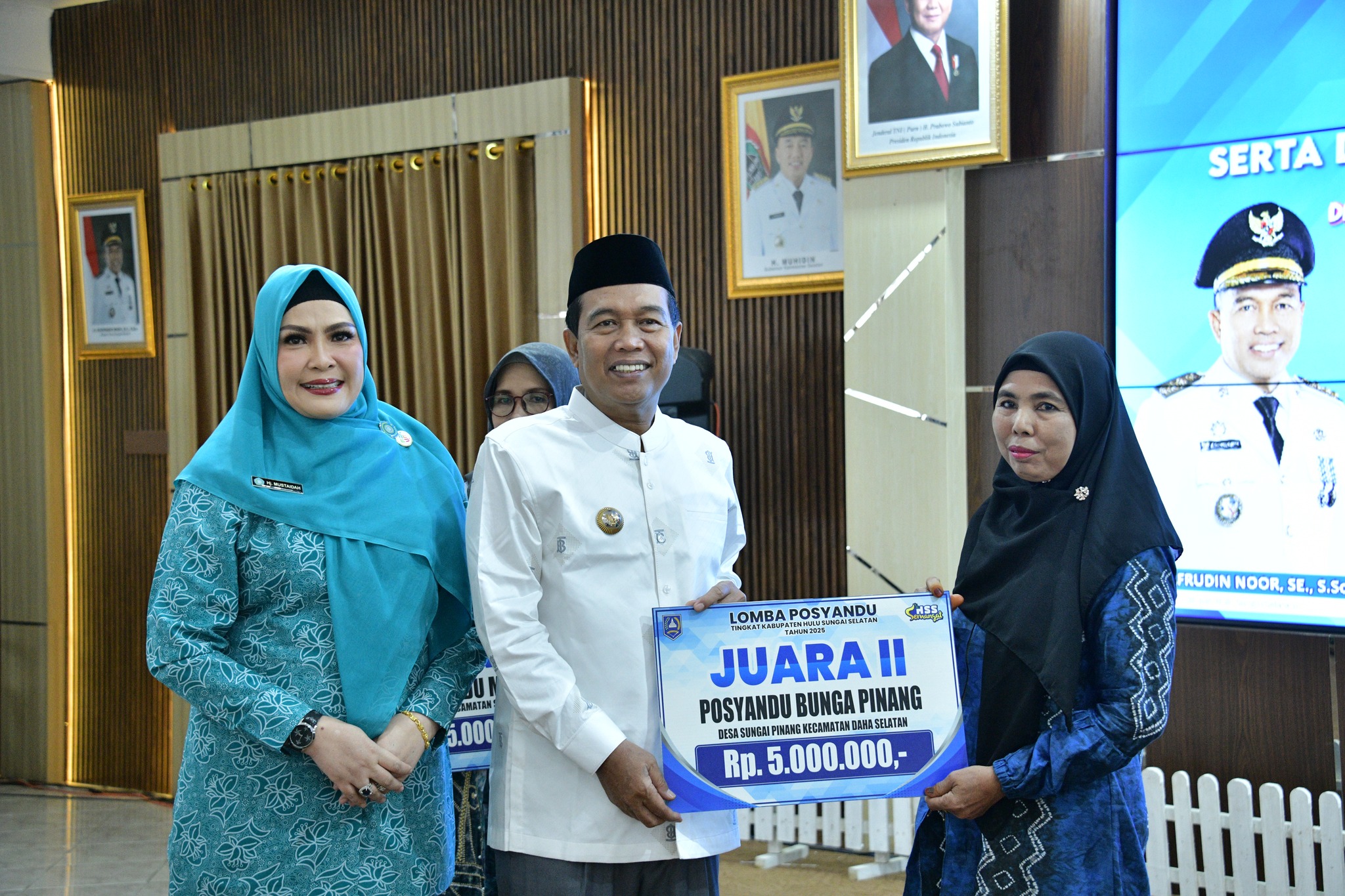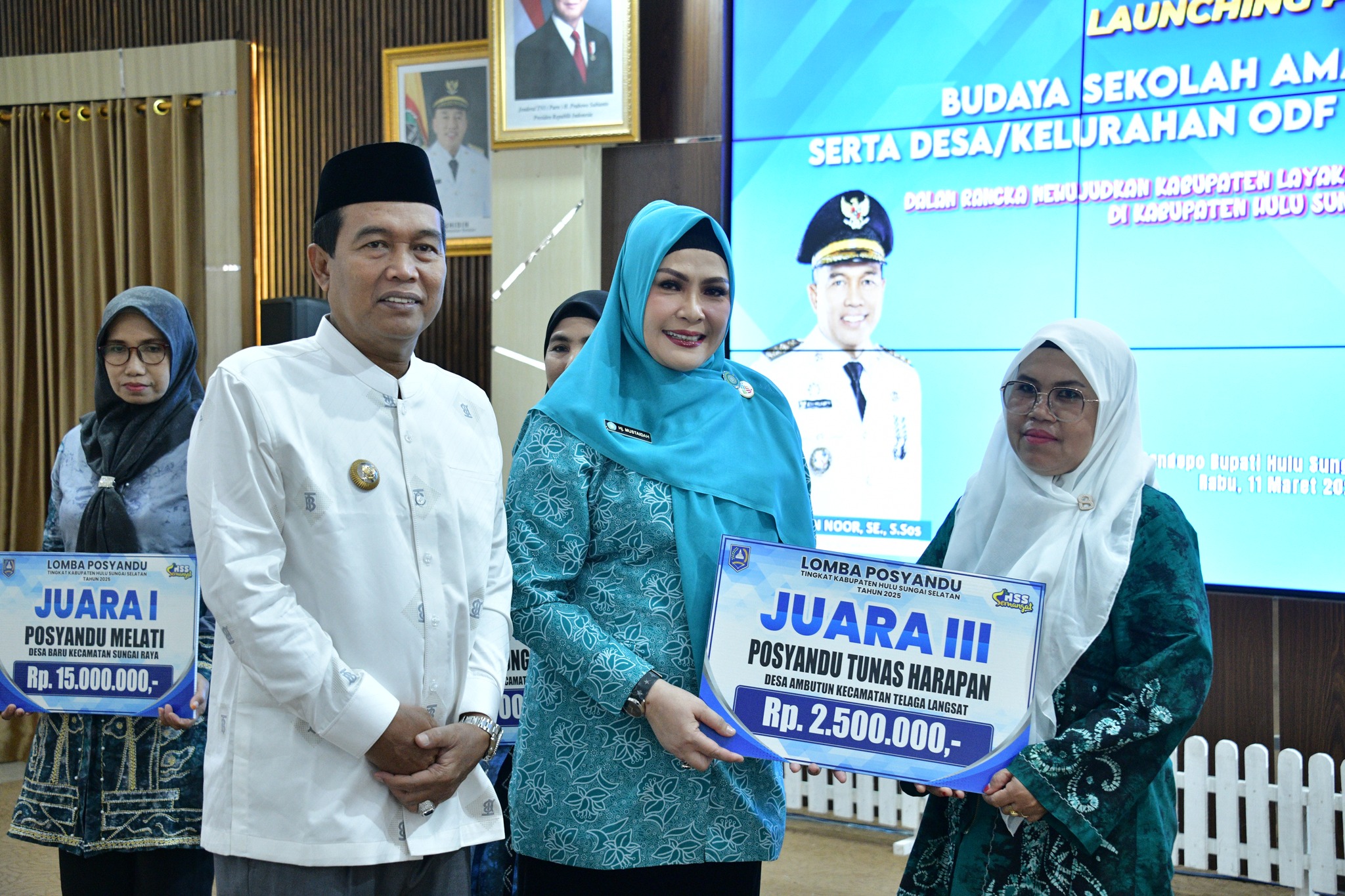 Kandangan – Bupati H. Syafrudin Noor bersama Ketua Tim Penggerak PKK Kabupaten Hulu Sungai Selatan Hj. Mustaidah Syafrudin Noor menyerahkan hadiah kepada para pemenang Lomba Posyandu Tingkat Kabupaten Tahun 2025. Penyerahan penghargaan tersebut dilaksanakan di Pendopo Bupati Hulu Sungai Selatan pada Rabu, 11 Maret 2026.